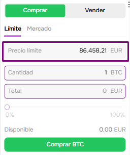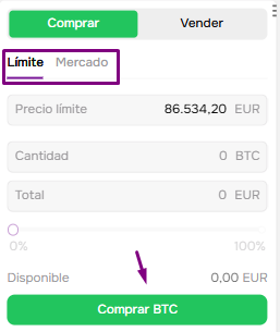 Límite (Limit Order) y Mercado (Market Order). La principal diferencia entre estos tipos de órdenes es que con una orden de mercado, no necesita establecer manualmente el precio de la orden, y la orden en sí se ejecutará instantáneamente al precio actual del activo. Para colocar una orden de mercado, debe seleccionar la moneda y la cantidad que desea comprar o vender y hacer clic en el botón Comprar (Vender si desea vender sus activos). La orden se ejecutará instantáneamente al precio de mercado. No es posible cancelar una Orden de Mercado.