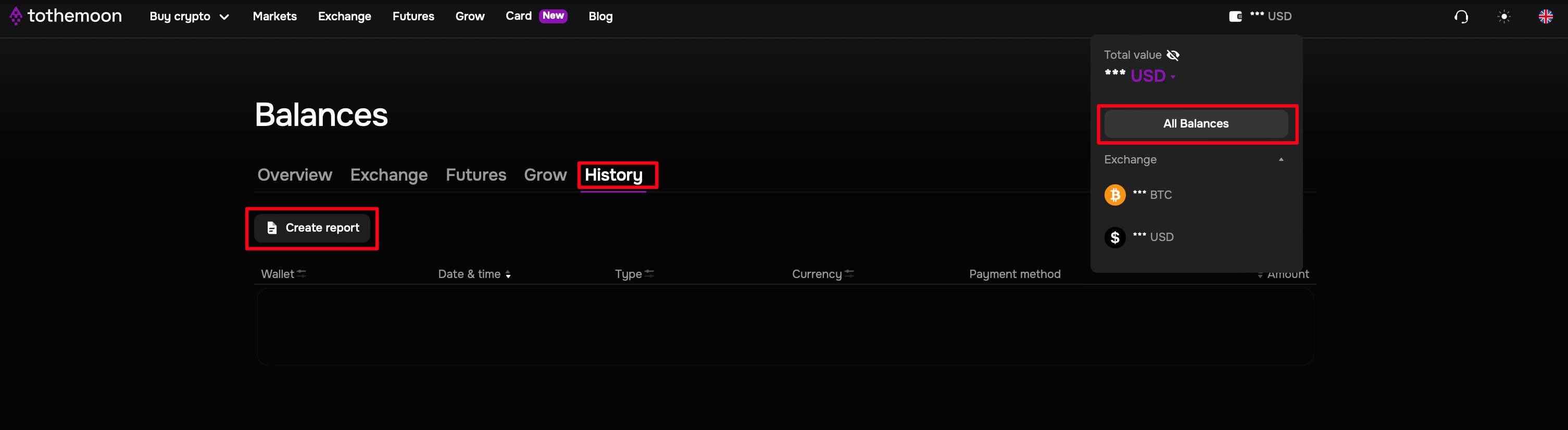 1. Once the account has been verified and approved, the employee will be able to download the report for the main account in the “Balances - History” section, which will be sent to his/her email.